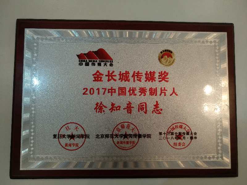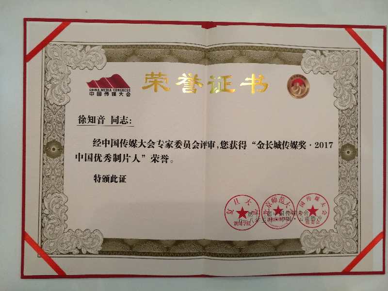第十三屆中國(guó)傳媒大會(huì)董事長(zhǎng)徐知音捧回優(yōu)秀制片人和優(yōu)秀制作公司獎(jiǎng)